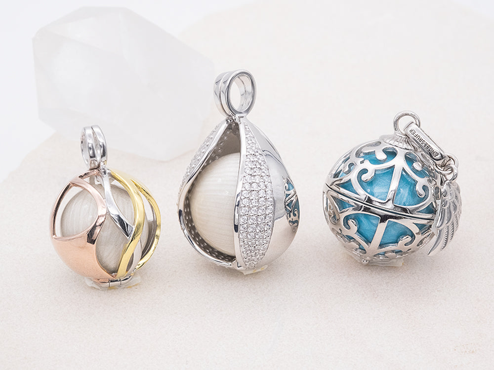 Anhänger 925er Silber Engelsrufer Flügel mit Klangkugel Perlmutt Weiß