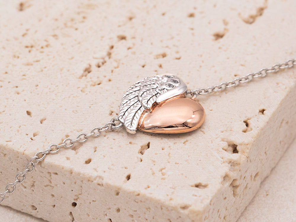 Halskette 925er Silber Kreuz Herzflügel Bicolor