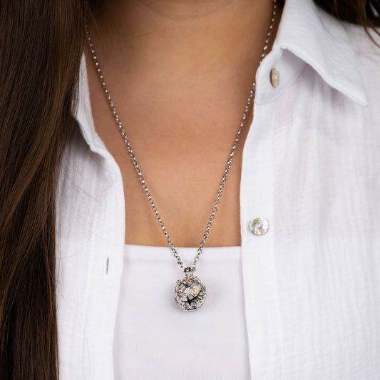 Anhänger 925er Silber Lebensbaum Tricolor mit Klangkugel Weiß