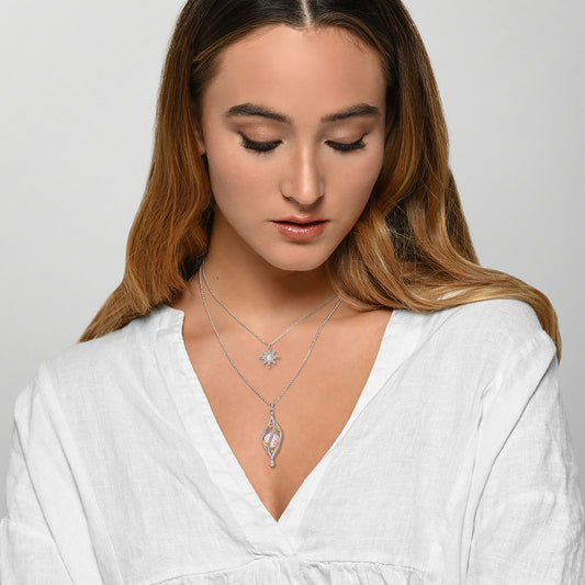 Halskette 925er Silber Universe Tricolor mit Kraftstein Rosenquarz