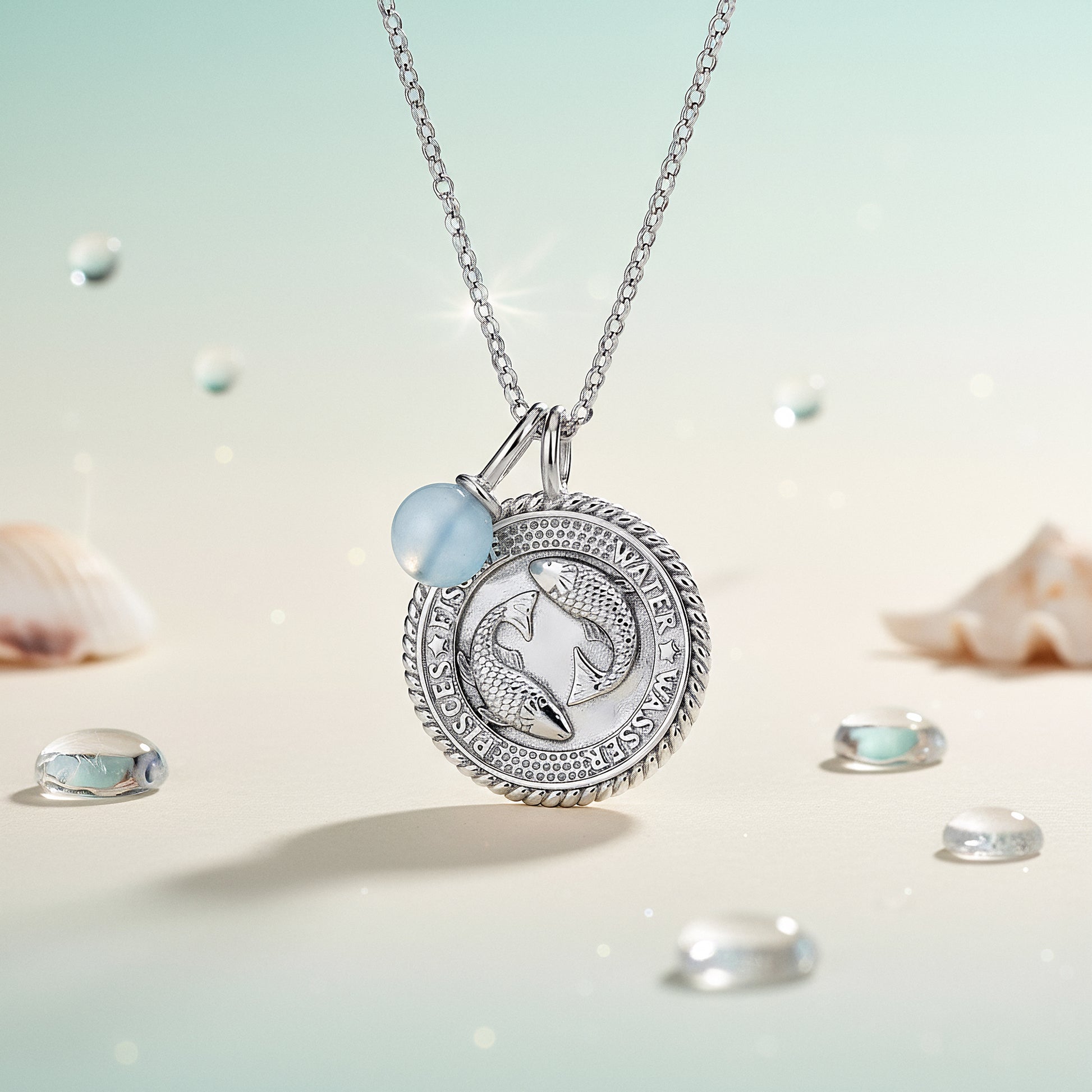 • Halskette mit Anhänger Sternzeichen Fisch aus 925er Sterlingsilber und blauem Achat