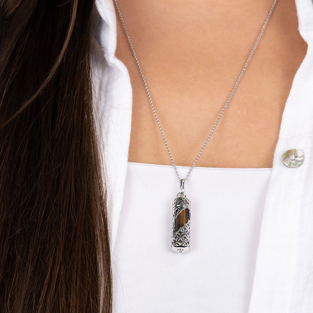 Dein persönlicher Kraftstein in einem filigranen Anhänger aus unserer Powerful Stone Kollektion. Unsere wunderschöne Engelsrufer Kette mit einem bezaubernden Schmuckgehäuse als Anhänger, präsentiert Dir hier ein Tigerauge als "Stein der Balance und Einsicht".