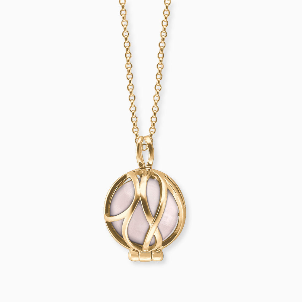 Deine persönliche Kraftperle in einem filigranen Anhänger aus unserer Powerful Stone Kollektion. Unsere wunderschöne Engelsrufer Kette mit einem bezaubernden Schmuckgehäuse als Anhänger, präsentiert Dir hier einen Rosenquarz als "Stein der Liebe". Die Kraftperle kann nach individuellem Befinden und Belieben ausgetauscht werden. Das goldfarbene Körbchen umschließt die Kraftperle schützend und besticht durch das wunderschöne Muster des Paradise. Kraftperlen brauchen die richtige Pflege, um eine lange Lebensdauer der Steine zu garantieren. Deswegen bekommst Du mit jedem Produkt aus unserer Powerful Stone Kollektion eine kleine Guideline, mit den wichtigsten Schritten zum Entladen, Reinigen und Aufladen. Das zeitlose Schmuckstück wird mit einem Karabinerhaken verschlossen und ist in drei Längen verstellbar.