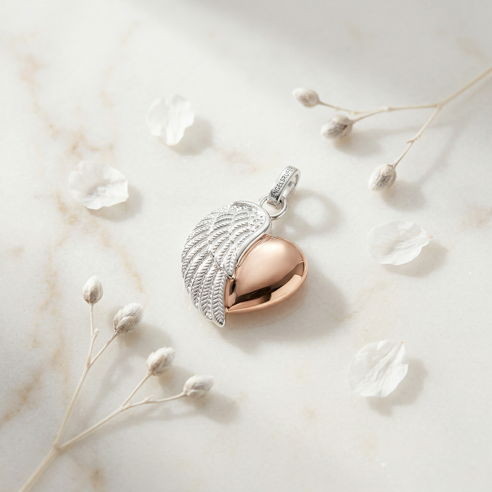With Love - dieser wundervolle Herzflügel Anhänger in Bicolor ist für einen ganz besonderen Menschen gedacht und verleiht Eleganz, wunderschöne Weiblichkeit und strahlende Jugend.