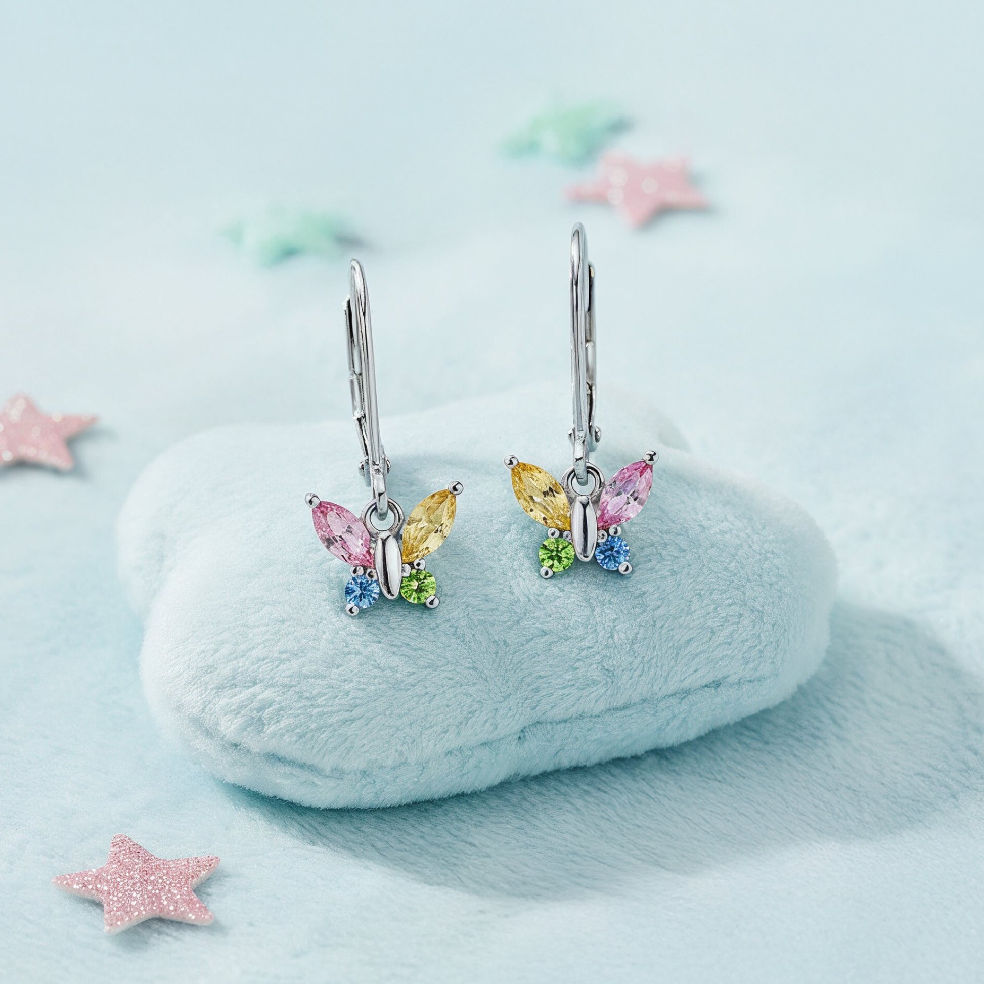 Kinder Ohrhänger Edelstahl Schmetterling mit Zirkonia multicolor